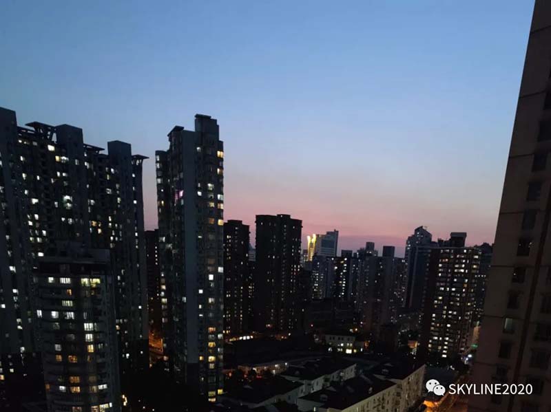 拍摄于上海疫情期间关在家里的第N天。那天早上起床就望见了碧蓝的天空,万里无云,不能出去的事实让我为这难得遇见的好天气而感到遗憾,所以在傍晚的blue hour我就决定记录一下这一天。正好那天夕阳也比较给力,呈现出了淡粉色的晚霞,就拍了这一张照片。