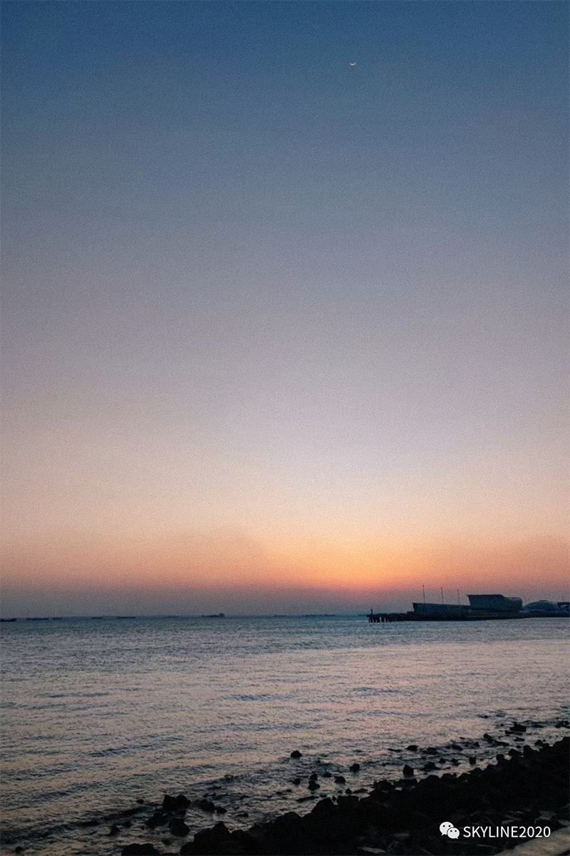 虽然拖着疲惫的身躯,但当见到茫茫无际,波光粼粼的江水与杂糅相间的朝霞敛于地平线时,我仅能瞠目结舌,将疲倦抛之脑后,感慨大自然的鬼斧神工,“太美了”。