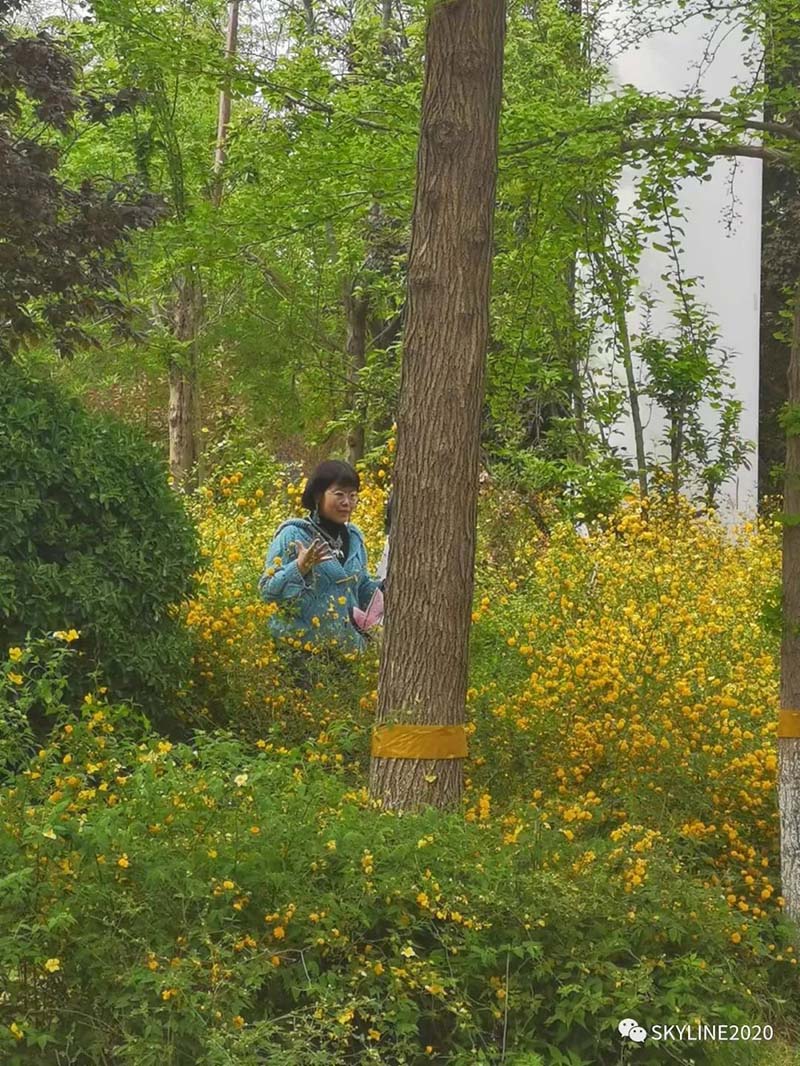 花丛中的演讲者,五十几岁的年纪,通过直播平台在互联网上发出了自己的魅力和声音。